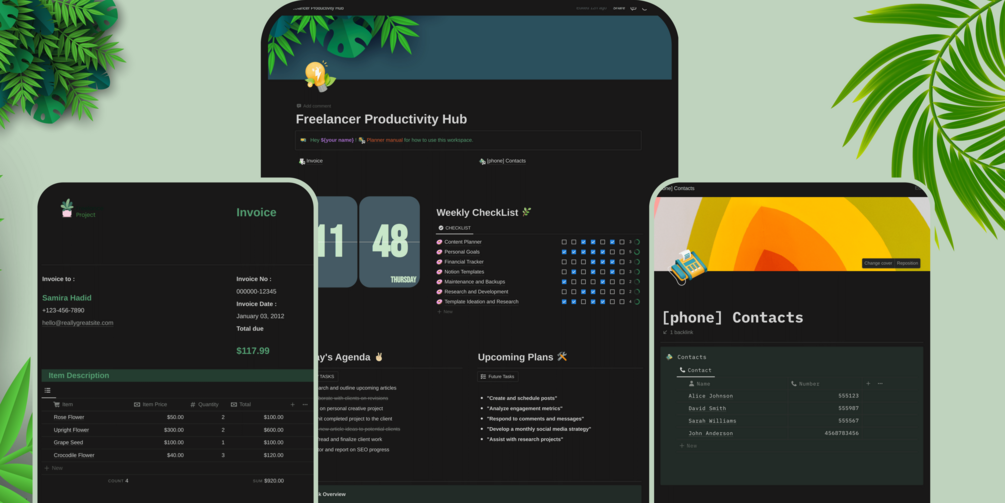 The Freelancer Productivity Hub is a versatile Notion template tailored for freelancers across different industries. This comprehensive workspace provides freelancers with the tools they need to enhance their productivity, manage projects, finances, and stay organized.