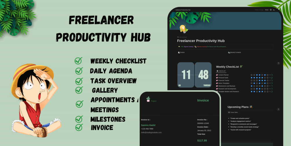 By using this Freelancer Productivity Hub template, freelancers can streamline their work, stay organized, and enhance their productivity. It offers a centralized space to manage tasks, appointments, finances, and project-related materials, ultimately helping freelancers succeed in their endeavors.